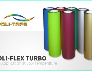 06 November 2023: POLI-FLEX® TURBO® is our newest polyurethane transfer film equipped with a special hotmelt for fast application at low temperature. POLI-FLEX® TURBO® is suitable for transfer to textiles like cotton, polyester, uncoated nylon,