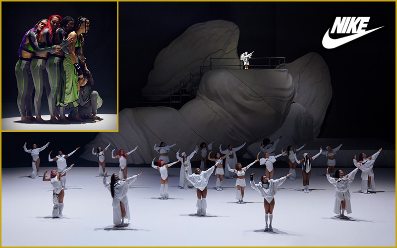 The moment was a 40-minute performance directed, choreographed and led by Goebel, brought to life by a collective of more than 30 Nike athletes and partners. It took its inspiration from Nike, the Greek goddess of victory, inspiring viewers to tap into their inner strength and support the collective power of women.