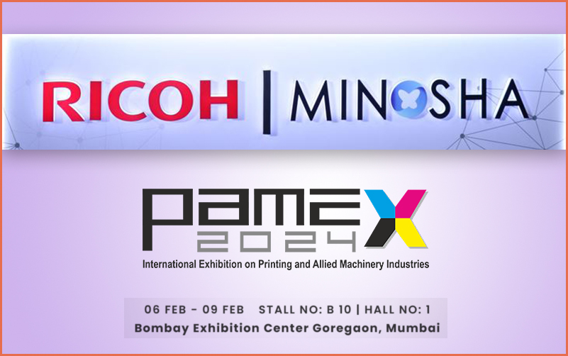 17 January 2024: Minosha India Ltd., a distinguished partner of RICOH products in India, is all set to make waves at Pamex 2024 Expo which will take place from 06-09 February 2024 at Bombay Exhibition Center, Goregaon, Mumbai. Organized by All India Federation of Master Printers (AIFMP) in collaboration with Print Packaging, the Pamex Exhibition is epitome of international excellence in Printing and Allied Machinery Industries, offering a platform for the latest products and solutions.