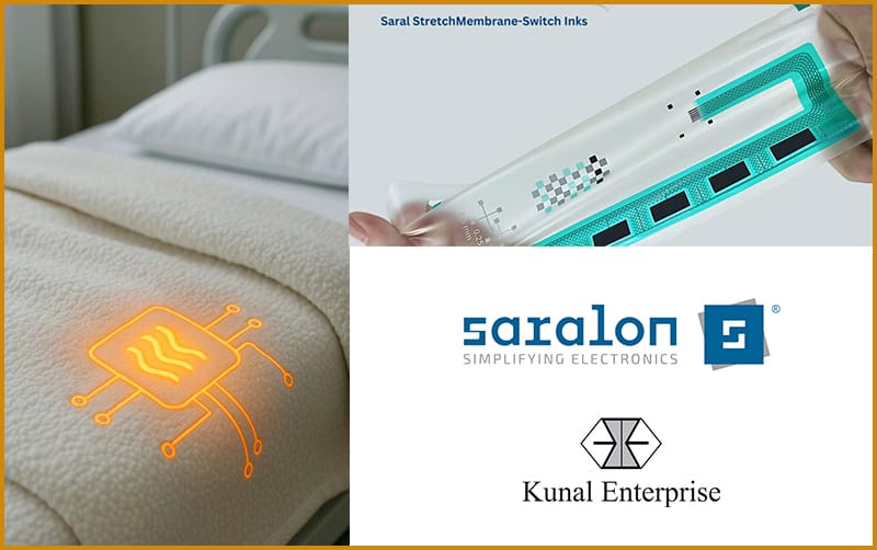 Saral StretchHeater Inks, have made it easy and efficient to integrate surface heaters into functional components that undergo bending, twisting, or stretching to fit complex geometries, like heated blankets and smart bed components used in hospitals.